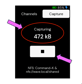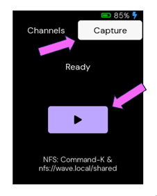 To view the capture, plug in a USB-C cable to a Mac or Linux machine. For Mac users run Command+K and enter this path: nfs://wave.local/shared