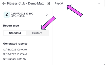 From the menu, select the reporting option, then choose **Custom**