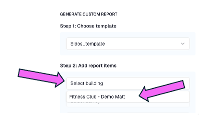 Note: Sidos will group the custom report by buildings. If your Project Site has multiple buildings be sure to add each on individually.