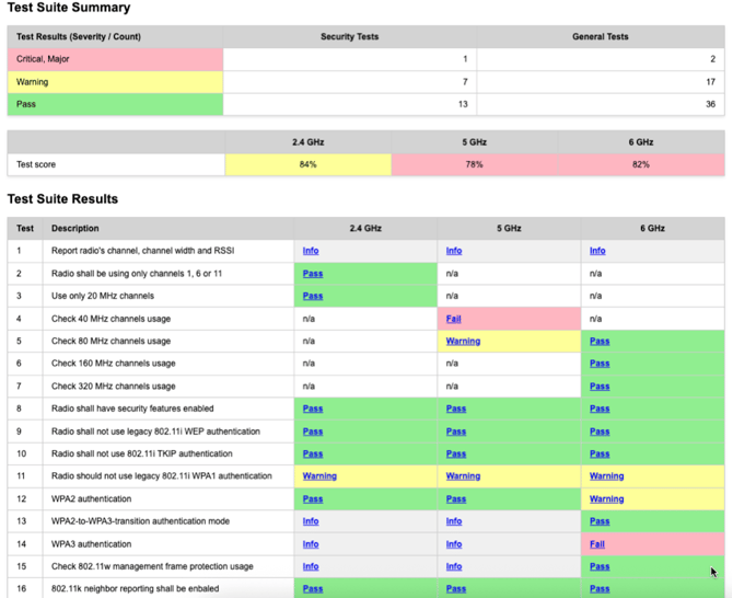 Please Note: These tests are based on industry best practices and can not be customized. If you would like customized Wi-Fi Checker reports, please see Deep Survey.